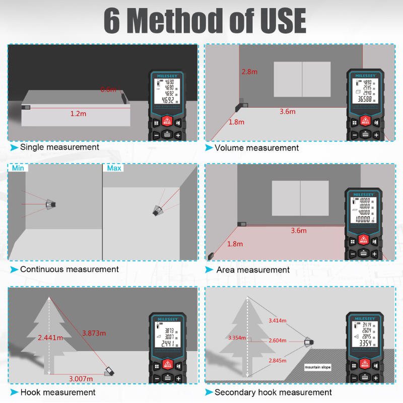 Mileseey 50M Laser Distance Meter Distance Area Volume Laser Measure